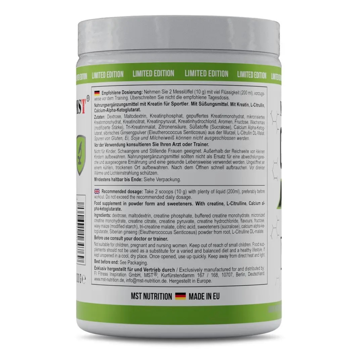 Прийом MST® Creatine Kick 7in1 допомагає організму підтримувати високий рівень АТФ, що збільшує силову витривалість та сприяє більш ефективному набору м’язової маси.
